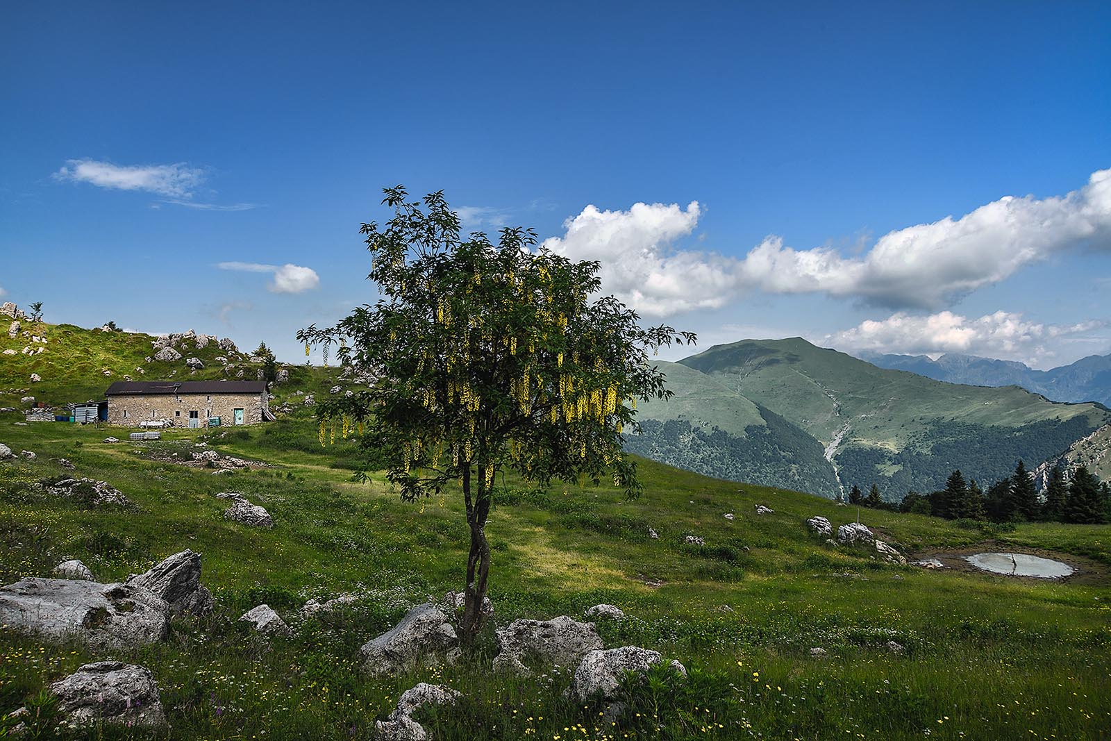 Un pulito paesaggio montano, senza tanti fronzoli ma che trasmette tutta la freschezza e tranquillità del luogo.